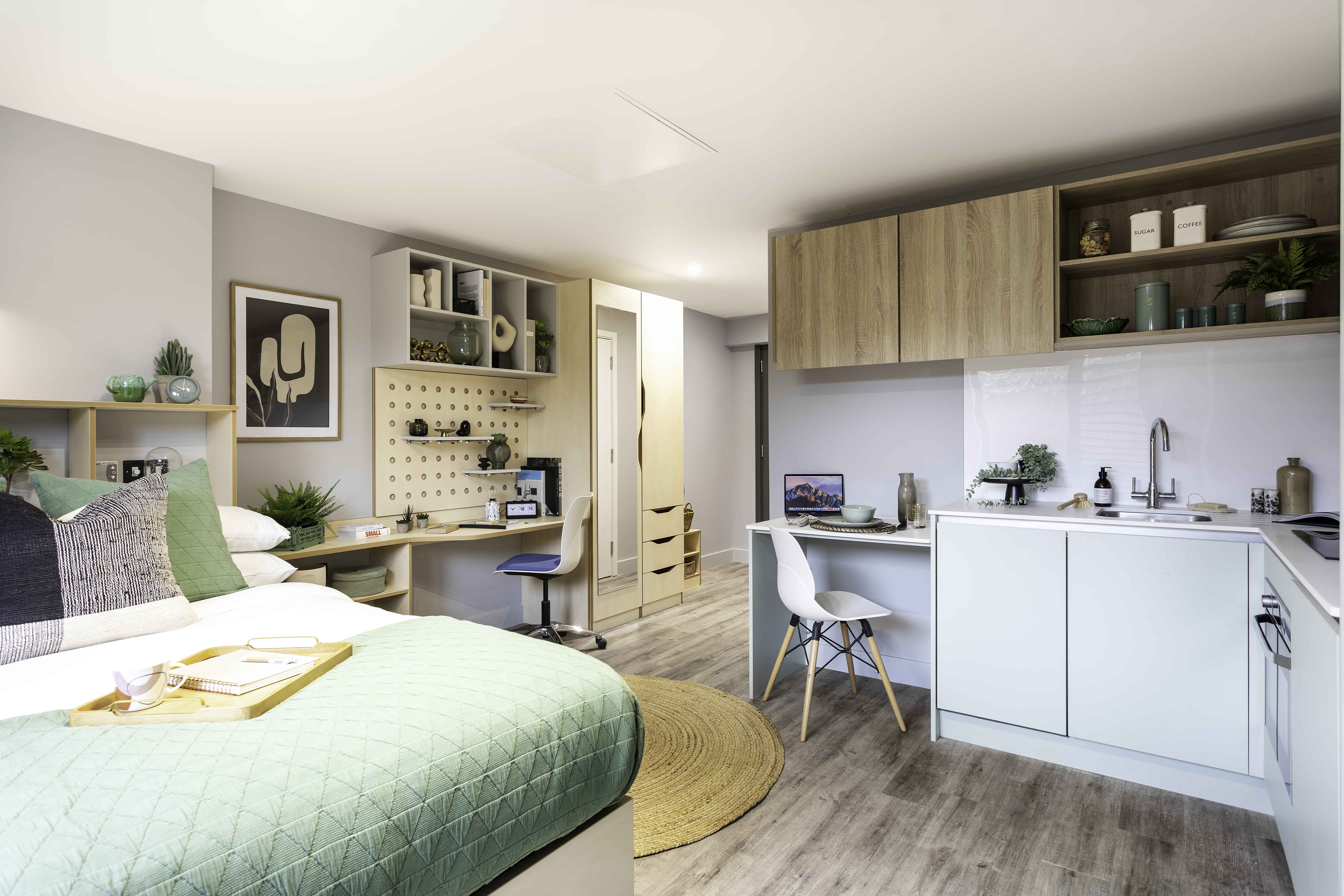 3. Studio Apartments: Standard Studio apartments in Belfast are fully self-contained units, featuring a private bedroom, bathroom, and a compact kitchen area. With no need for shared spaces, studios offer maximum privacy and independence, making them ideal for students who prefer a complete living area of their own.